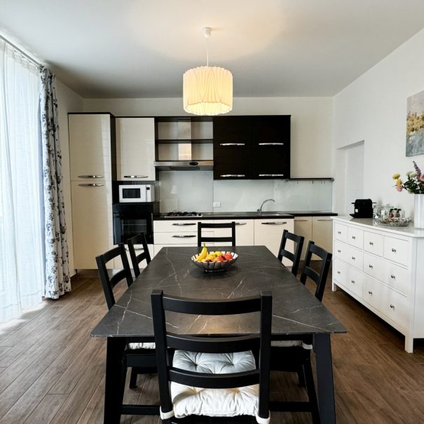90mq | 4 persone | open space | 2 camere | 1 letto matrimoniale | 2 letti singoli | 2 balconi