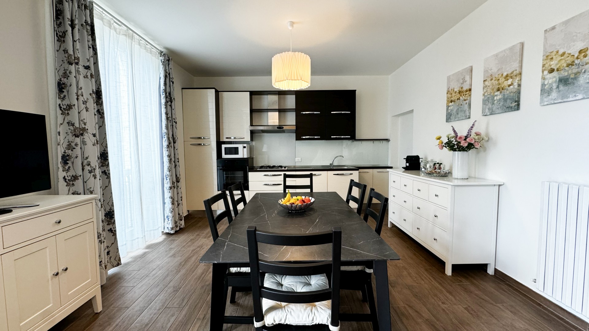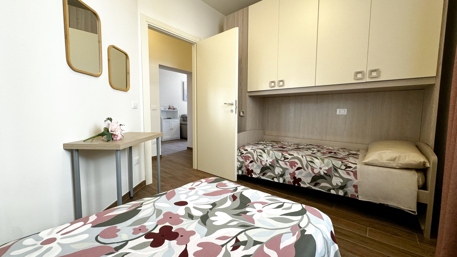 90mq | 4 persone | open space | 2 camere | 1 letto matrimoniale | 2 letti singoli | 2 balconi